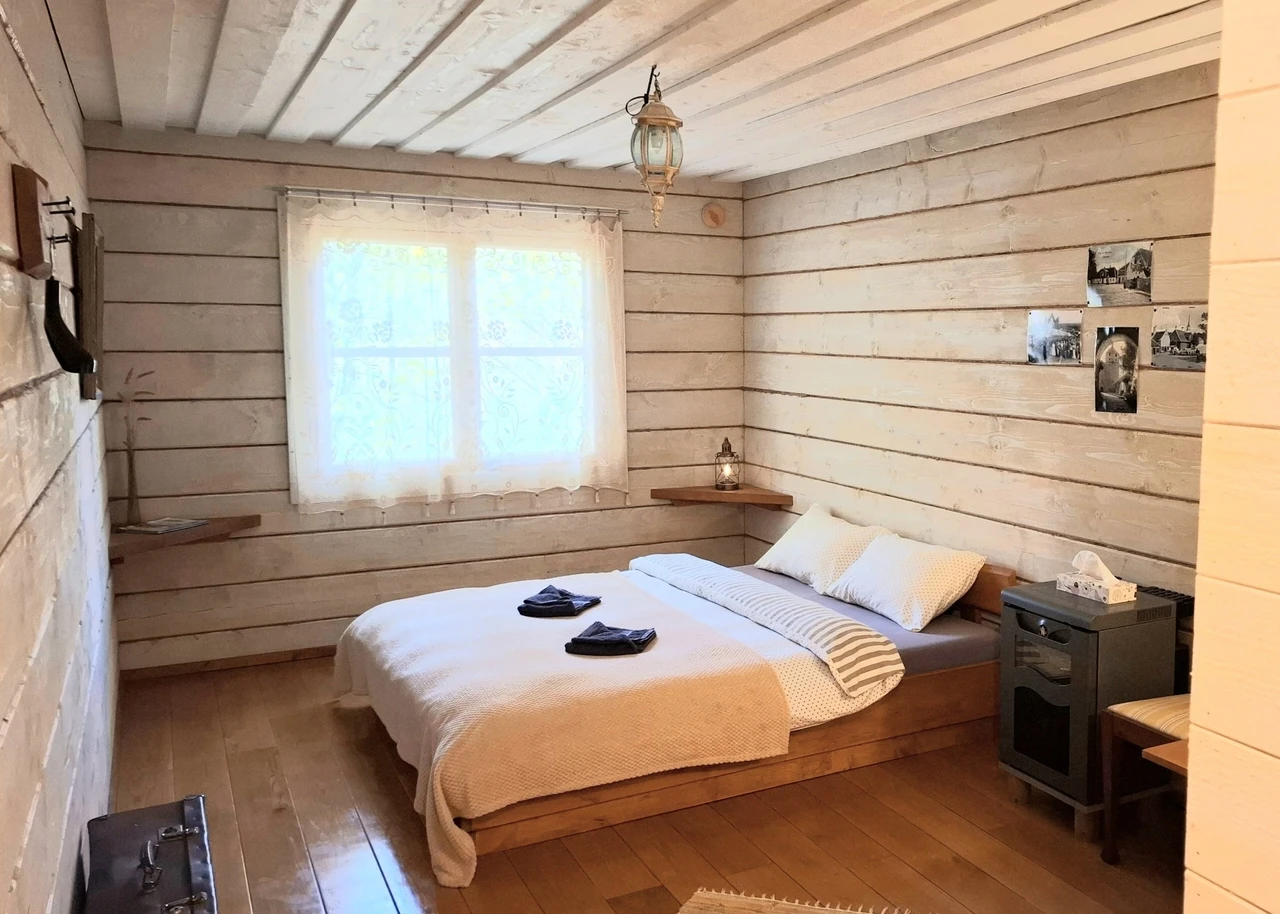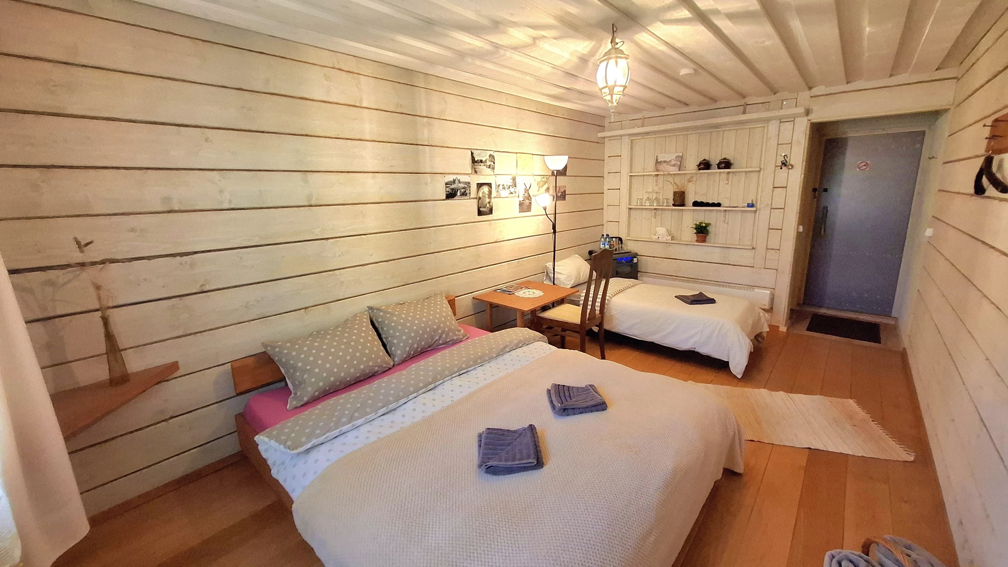 ROOM WITH A WIDE BED ON THE 2ND FLOOR OF THE SAUNA HOUSE (with private entrance, NB stairs) ... 62eur (sitting area, radio/cd, refrigerator)