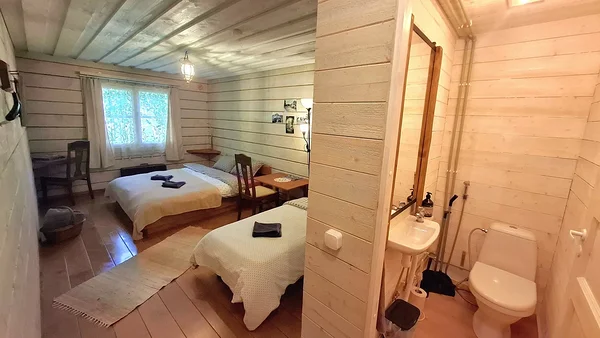 ROOM WITH A WIDE BED AND TOILET *Urve* / *Anna* (toilet, radiator, mini fridge, kettle) 2 people €86/night, 1 person in the room €55/night. Extra bed available €15/night.